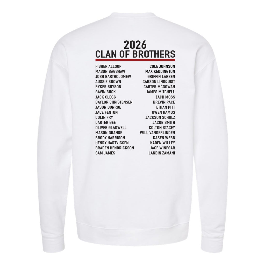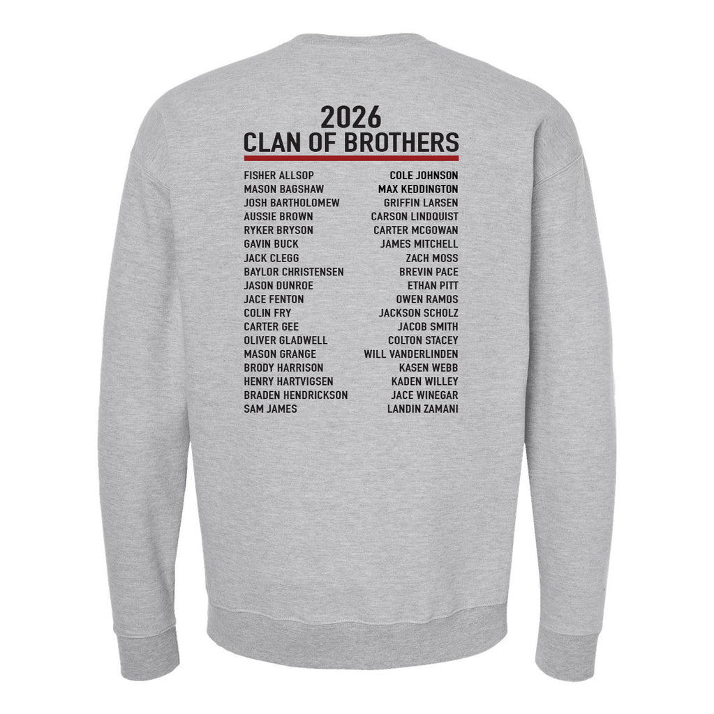 Viewmont Clan of Brothers Crest Crewneck Sweatshirt. Double-Sided with boys names on the back
